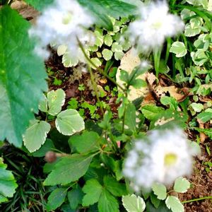 モッコクの新芽🌱と シュウメイ菊😽 庭のモッコクに秋明菊が 支えられて咲いてますʕʘ̅͜ʘ̅ʔ まだ白の秋明菊はツボミの ままですʕ·͡ˑ·ཻʔ