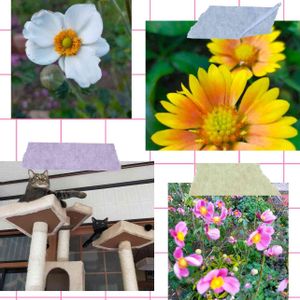 おはようございます 清々しい朝です☀️✨ 今朝の庭に咲く花 秋明菊とガーベラ キャットタワーの一番上で くつろぐ満福君とトンプク君 いつも癒やしてくれる 可愛い愛猫ちゃんです😺🐈⬛