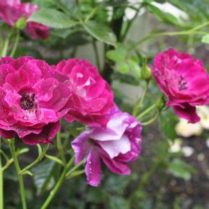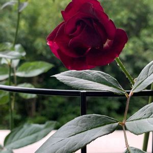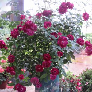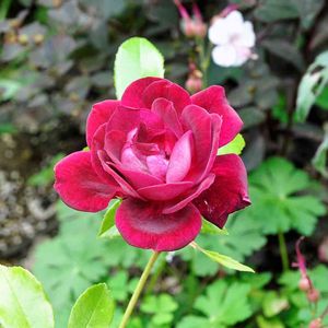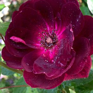 薔薇 バーガンディ・アイスバーク ✨綺麗に咲いています💫 作出:アメリカ 作出年:2007年 花色:バーガンディ(深い赤紫色) 花型:カップ咲き 花径:中輪 6〜8㎝ 香り:中香 (ティーローズ香) 花期:四季咲き 🌱銘花アイスバーク(白色)の枝変わり。