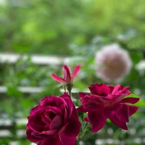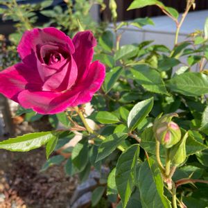 ❝ 薔薇 バーガンディ アイスバーグ(Burgundy Iceberg) in my garden ① ❞ ❛ バーガンディ アイスバーグの三姉妹 快晴のお天気、木漏れ日がちらちら ちょうど、木漏れ日のスポットライトが花芯に当たった瞬間 ❜ こんにちは! 撮れたてです! コロナウィルス感染、気を緩めずに! ですね! 《 出来るだけ、一枚一枚、別の人が撮った様な枠/形に嵌らない観る人にも自分自身にも飽きが来ないような写真にしたい》 我が家で今シーズンの14番目に咲く品種の薔薇です。 <2021マイ・ローズNo.14 バーガンディ アイスバーグ > ひとつ前の、引いて撮影した写真の バーガンディ アイスバーグ 三姉妹のみをアングル変えてクローズアップして撮影しています。 咲き始めを撮るチャンスがなくて、有終の美の撮影には何とか間に合いました。 不思議なものです。 撮影後、1時間も経っていないのにさっき三姉妹を行ったら、奥の末っ子を除いて、手前の姉妹は萎れていました。 まるで、育て主の私の撮影が終わるまで頑張って待っていたかのようです。 実物の “ バーガンディ アイスバーグ ” が持つ自然・ナチュラルな色合い、華やかさなどを活かして写し出すべく、データ加工には頼らずに、撮影時のさまざまな設定で1~2分間以内の撮影ながら手間をかけて工夫を試みています。 撮影日:2021年5月8日 午前中 焦点距離200mm(=実効)