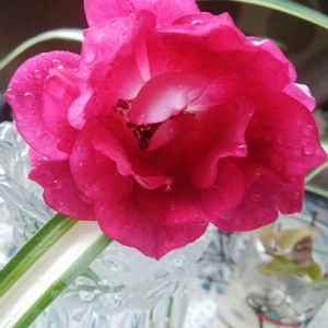 おはようございます😃 雨の中☔️咲きました✨ バーガンディ アイスバーグ🌹 近所の園芸店の薔薇の挿し木の講習会 で使用された枝を頂いたものです🥰 では、お仕事行ってきます❣️ 皆さんにとっていい日でありますように🙏