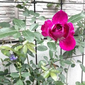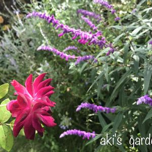 薔薇バーガンディアイスバーグ アメジストセージ ロシアンセージ バーガンディアイスバーグが開ききっちゃってますが。。 台風ひどくなりませんように。。