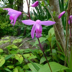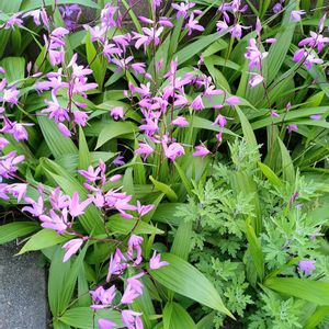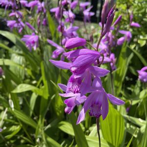 シラン(紫蘭)が咲いていました。 ラン科の多年草で、草丈は約50cmの紫色💟の花です💕 紫の他、白い色などの花もあり、美しい景色が見られます🎶😃