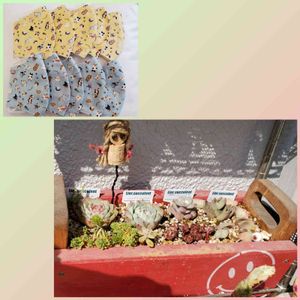 おはようございます~😁 クリスタルさんとたみにくちゃんにいただいたセダムちゃん達😊😊😊 七福神の可愛い小さな苗が可愛かったので❤️ 今から作ろうとしてる不織布マスクカバー😊 お洒落~可愛いと声をいただいたので🎶🎶 来月のお楽しみプレ企画でプレゼントしたいと思います😘😘😘 さてとさてと、本日旦那さんがお休みなの😂 とりあえずコロナが増えてるからどこにも行かないけど…重たいもの買い出しに行ってきます😆🎵