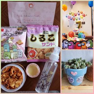 こんばんは🌙😃❗ 今日、バラと夢CLUBプレ企画で当選した~( *´艸`)ricoさんの素敵便が届きました🎵 ハンドクリームはみつろうとスイートアーモンドの良い香りがするの💕💕 なんだろう癒しです❗ スプレーは抗菌スプレーなんだって~‼️ 花粉症だからスプレーすると鼻がスッキリするの〰️‼️ 芋チップスは旦那さんが食べる食べる~( *´艸`)お菓子も仲良くいただきます~💕 むすこ君、7歳になりました~( *´艸`) まだまだやんちゃですが…優しい二年生になってくださいと願うばかりです🎵 碧魚連はたみにくちゃんからいただいたので自作鉢にイン〰️‼️ 出来ました~( *´艸`) 良い1日になりました🎵