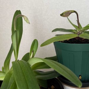 何日か前に花2輪はカットしたのですが(切り花にしてました)、また蕾が出てきました。 フェイリアナム(他のパフィオも)、1年に1度の開花だと思っていたので、1度咲いた後に、また次々咲いてくれる性質があるのなら嬉しいですね。 この個体は、初花から一茎に2つの花を咲かせるびっくり個体だったので、以前専門店の詳しい方に質問させていただいたことがありましたが、自然界でどんなふうに咲いているのかについては未知の部分も多いので、一般的に知られていない咲き方が起きても大丈夫みたいです。 この個体には今後も破天荒な成長を期待します✨