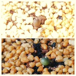ロフォフォラの種をまいてから 約1ヶ月すぎました。 キウイみたいになった子と 翠のまる頭から毛が ふさふさしてきた子 特徴がでてきましたよ かわいい(*´-`)