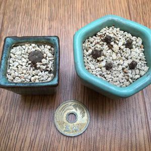 今日はサボテンの日🌵 とのこのとで 花が咲いて種が採れたので 実生に挑戦したものです。 左は3年目の烏羽玉 右は1年目の翠冠玉 自己流なので生存率低い…