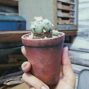 我が家に嫁いできたkemuriradio産ロフォフォラ親子👨👶リメ鉢に植え替えました😆 ロフォさんってこんなにぽふぽふしとるんね!可愛い😚
