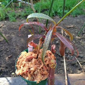 ネペンテス ベントラータ 写真1 現在(2025/9/5) 写真2 6月の様子 写真3 購入時の様子(2025/3/15) 私が初めて購入したネペンテスです。 強い品種なので、今年の猛暑続きにも負けず、小さくて可愛い袋をつけ続けてくれました! 今後の成長に期待です!