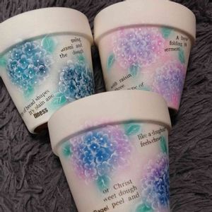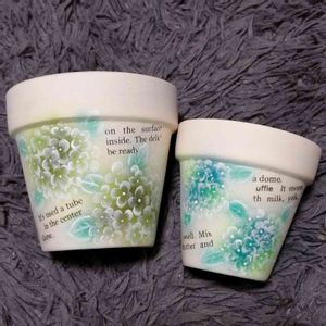 紫陽花好きな私💓 昨日の夜ベースのカラー吹いておいて、銀河鉢の後に描きました😘💕 仕事の前と後にこんな事ばかりやってるので、お昼ご飯食べ損ねるとこでした😁 この鉢茶色に汚れた風にするか、このままにするか、水滴のように水色水玉散らすか迷ってます🙄 その他良きアドバイスも大歓迎🙌 センスのいいフォロワー様方に聞いちゃおう~🎶と途中で撮影Σp📷ω・´)