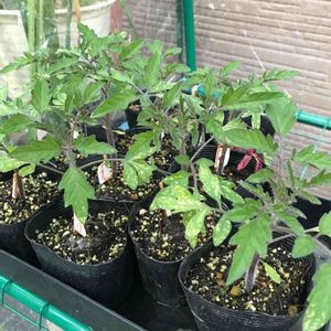 ミニトマトの苗は低温の傷みが残ってますが、そろそろ定植してもいいぐらいに。