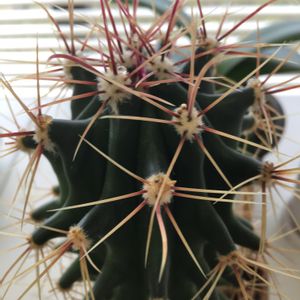 おはようございます☀ プレゼント企画も終了し、ホッとしております😌 今日から4日間実家に帰省しますので、postのペースは減るかも…いや意地でもpostするかも⁉️(笑) 朝イチpicは 「赤ちゃんトゲ🌵」 天城さんのてっぺんから可愛い小さなトゲが〜😍 超可愛い〜❤️❤️❤️ サボテンはこうやって湧き出るように大きくなるんですね〜💕 フェロカクタスは強光と昼夜の温度差が重要とあったのでとりあえず日ざらしにしておりますが、トゲもカチカチ、本体も綺麗なグリーンなので良い感じかな、と✨ この調子でどんどん大きくなって、可愛いお花を咲かせて欲しいですね〜( ⸝⸝⸝⁼̴́◡︎⁼̴̀⸝⸝⸝)💕