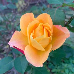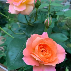 🌹四季咲き薔薇 スヴニール・ドゥ・アンネ・フランク ( 🇧🇪Souvenir d' Anne Frank ) 🌤快晴 おはようございます🌻 アプリコットピンク色🧡💗 🌏世界中に愛されている 「アンネの薔薇」✨..🌹 可憐に咲いてくれました🥰 作出者がアンネさんのお父さまに 捧げた薔薇と 聞いています✨•:•♡.•*°🕊🕊