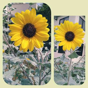 ニッコリ(◍•ᴗ•◍)✧*。 ヒマワリ🌻 シロタエヒマワリ🌻 シルバーサンシャイン🌻 秋にも可愛く元気に咲くヒマワリ🌻 あるんですね🎵💛 別名:銀葉向日葵🌿 茎と葉が銀白色の絹糸状の毛が密集 涼しげな秋の🌻 花言葉✿❀❁ 『私はあなただけをみつめる』💓 幸せな言葉✨🎵💛