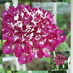 可愛らしい(◍•ᴗ•◍)✧*。💕 スカビオサ✨🌼 和名:マツムシソウ(松虫草)🌿🍀 西洋松虫草みたいですね🎵 赤紫色💜❤の落ちついた色が綺麗✨💓 小さな花が沢山集まり ピンクッションの形に🎵 花の中に白く見えるのは❔ 花言葉✿❀ 『風情』『魅力💓』