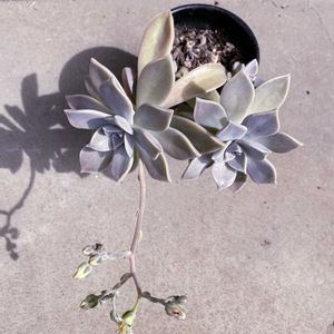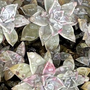 グラパラリーフ。2024年9月に苗を購入。 食べられる多肉グラパラリーフ、葉挿しして約一年、親株の元の大きさと同じくらいまで育ちました(右上)。 室内の窓辺に置いて、水は葉を触ってハリがなくふにゃっとしていたらあげる感じ。 夏の35℃以上の暑さ、冬の0℃くらいの寒さも大丈夫でした。 ただ、厚手のレースカーテン越しに置いたもの(右下)は生育不良になったので、明るさは必要だと思われます。 ※今までの経過は「令月の多肉」タグを参照ください。 ————— Graptopetalum paraguayense ベンケイソウ科グラプトペタルム属 常緑多年草、多肉植物 元はメキシコなど中南米原産で観賞用として人気のあるグラプトペタルムという品種をアグリアシストジャパン株式会社(AAJ社)が食用に改良したもの。「はりんご」という名称でも品種登録されている。 (元となったグラプトペタルム・パラグアエンセは、「朧月」という名称でも呼ばれている) ケールと同量のカルシウムやマグネシウムなどがあるとされていて、4枚食べれば牛乳100mlと同じカルシウムを摂ることができる。一枚の葉にビタミン、ミネラル、マグネシウム、カルシウムなどを豊富に含み、「食べるサプリメント」とも呼ばれるほど、栄養価が高い。二日酔い予防効果もある。