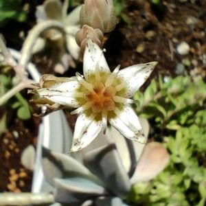 グラパラリーフ。2024年9月に苗を購入。 今年4月に屋外の地面に葉挿し(というより葉置き)したグラパラリーフ、雨ニモマケズ風ニモマケズ夏ノ暑サニモマケヌ丈夫ナカラダヲモっているみたいで、3ヶ所とも無事生きてます。 6月には親株の葉(黄色い矢印)が枯れて、子株が一人立ちし、その後はあまり成長もしないけれど枯れもしないという感じです。 すごい!すごすぎる! 冬はどうなのか? このまま見守っていきたいと思います。 (4、5月の様子は2枚目画像参照) A. 一番日向、雨には当たり放題。他の植物の陰になりがち。 B. 半日陰、一応軒下で雨は若干当たりにくい C.半日陰、雨には当たり放題 ————— Graptopetalum paraguayense ベンケイソウ科グラプトペタルム属 常緑多年草、多肉植物 元はメキシコなど中南米原産で観賞用として人気のあるグラプトペタルムという品種をアグリアシストジャパン株式会社(AAJ社)が食用に改良したもの。「はりんご」という名称でも品種登録されている。 (元となったグラプトペタルム・パラグアエンセは、「朧月」という名称でも呼ばれている) ケールと同量のカルシウムやマグネシウムなどがあるとされていて、4枚食べれば牛乳100mlと同じカルシウムを摂ることができる。一枚の葉にビタミン、ミネラル、マグネシウム、カルシウムなどを豊富に含み、「食べるサプリメント」とも呼ばれるほど、栄養価が高い。二日酔い予防効果もある。