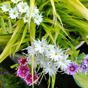 星咲きフロックス ここは4色咲き こぼれ種であちこちで 開花 風知草の鉢にまで進出している😆