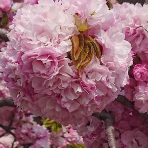 散歩道で咲いてる山桜ですが、どれも鞠のような咲き方してました。