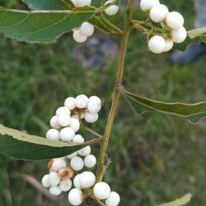 シロシキブです。 用水路脇から枝が伸びて白い実がいっぱい咲いていました。