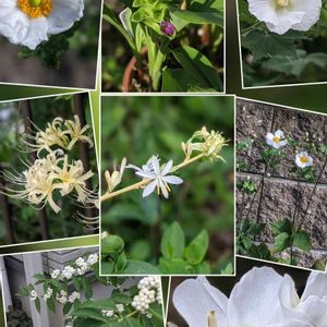 白い花コレクション 中には花🌼ではない物も混ざってました😅 今日はつぶつぶの日と知り、びっくり‼️ 昨日コラージュしたので
