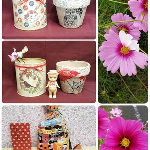 昨日、さくら餅子さんから、素敵便✨🎁✨が届きました。(*^▽^*)ワーイ🎶 中にはリメ鉢とリメ缶とソニエンくんとミルキーピックとお菓子等盛り沢山‼️✨。 リメ鉢とリメ缶は、前も後ろも絵があって、2倍楽しめます。😊🎶 ソニエンくん、カワイイ‼️😍 お花の種も、育てるのが楽しみです。😄 大切に使わせていただきます。♥️ さくら餅子さん、ありがとうございました。🙇💕 右側のお花は、今朝の散歩で見つけたコスモスです。✨ ピンクのお花の中で、花びらが2枚だけ白いものがありました❗😃 コスモスにもこういうのがあるのですね。😊🎶 頑張ろう❗日本‼️ 👊✨