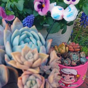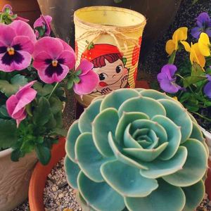 また ビオラのおじさんの 登場です‼️ 今日は ペコちゃん祭りだってさ‼️ おいしそうな ミルキーを 見つけたぞ😃 何?何? さくら餅子さんの 手作りピックだから 食べられないそうだよ‼️ それにしても 本物みたいだなぁ〰️😊 sue.29さんの 寄せ植えも 可愛いなぁ〰️💕 以上 おじさんたちの 会話でした😊