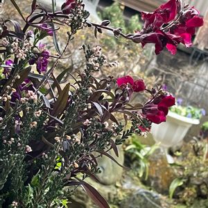 キンギョソウ ブラックプリンス まだまだ咲き続けます🌸 玄関横で想像以上に大きくなって 物凄い存在感。 この鉢の中には2株ありますが 秋から頑張って咲いています😊 もう少ししたら短く切って 夏に強い子と入れ替える予定です。