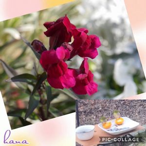 今日のお花 キンギョソウ ですϵ( 'Θ' )϶ 今朝は雪が舞いましたが、畑で元気に咲いています😊 左上はブロンズレッド 枝の色が渋くてステキ✨です🥰