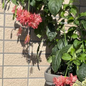 ハイビスカス風鈴仏桑花の 居場所が決まり 朝からの 強い太陽浴びてます 揺れる花 スキだわ❤️ この色味に元気づけられます 西陽は避けられるものの 購入のガーデンセンターより 過酷なベランダ環境に 慣れて欲しいものです^ ^