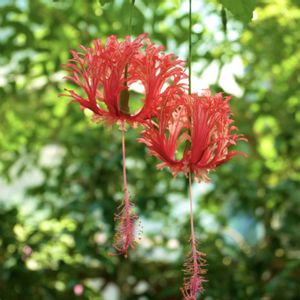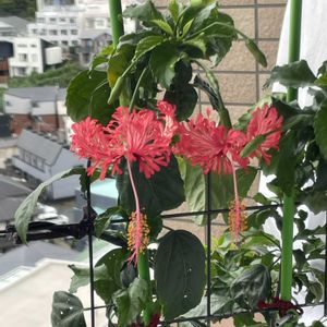 花姿に一目惚れして 衝動買いの風鈴仏桑花 ミニ垣根で 枝が暴れるのを修正してみた 室外機の熱風対策の 水撒きばかり‥ 花無しだったベランダに 次々と咲く ハイビスカスを 迎えてヨカッタ^ - ^✌️ 小さな筒の様な蕾に コレだけの花が 折り畳まれいるのは 不思議