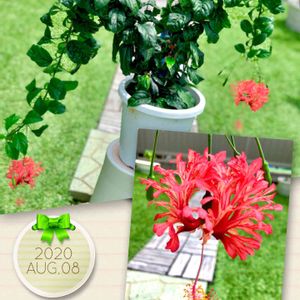 こんにちは☀️ 今日は風鈴仏桑花が二輪咲です🌺✨