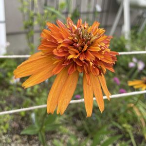 ぼんやり眺めていたらフェンスの隙間にオレンジのものが。 覗いてみたらフェンスの向こう側でエキナセアが咲いていましたいつの間に!? 何とかフェンスのこちら側に動かせました。 いつもより早い気がします。この前寒い日があったと思ったのに、季節の移り変わりについていけません。