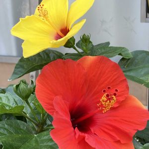 こんにちは🌿 今日のお花さん達🌸 八重咲ハイビスカス🌺 3色丼なんだけど 今日は2種類4輪のお花が咲きました🌺🌺🌺🌺 今日もお疲れ様です💕