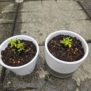 「姫ザクロの実生(みしょう)と親苗」 10月2日am6: ✧p📷qω•,,´)パシャ✧ 先月の5日の日に投稿した台風15号で倒れた姫ザクロの木、実が落ちていたので割ったら、中の種がまだ白かったけど、撒いてみたら芽が出てきた。🌱 やっと葉っぱの形が親と同でじになったから、雑草でないのが分かりました。 水やりを上からすると、種が動いちゃうから、下面給水にしておきました。 最初分からなかったから、上からあげた💦 だから種が流れて片側に寄って🌱生えてきたんだね。 もう少し大きくならないと、植え替えが難しいですね。 種蒔のトレーを使えば良かったです。😅꜆꜄꜆