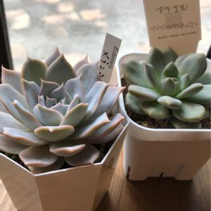 新しくお迎えした2種。 ニュアンスカラーのメランコリーさんと ぷくっとしたアリエル。 夏の脅威はとりあえず超えたと 考えて、この夏★になった多肉さんは エケこころと、スノーバニー子株。 多肉初心者に小さな株、葉の薄い子は 難しいと思いました。 肉厚で大きな子は私の拙いお世話でも 頑張って夏越してくれました。 そういう理由もあって今回は 割と大きなの購入してきました😓 さぁ今度は最低気温を気にしなきゃ いけないのね。
