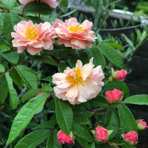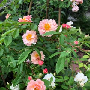 コーネリア🌹我が家では、数少ない地植えのバラです。 虫がいたり、枯れた花も付いてますが💦 いちばん賑やかな時です💕