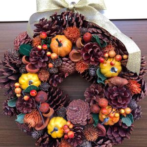 庭にあるハーブ達でリースづくり🎃🎃🎃製作中から飾った後も良い香り💞💞💞ローズマリー ローリエ レモンユーカリ セージ エキナセア フヨウ ししとう😜初めてにしては上出来かな?