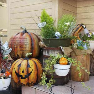 我が家の玄関です🌼 造花だけど、ハロウィンコンテストに参加します🎃🦇👻毎年100円ショップのを少しずつ仲間に加えて飾ってます♫