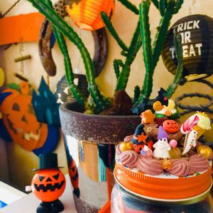 またまた、ハロウィン🎃 これはキャンドゥのキャンドル立て🕯 穴が開けれないのでネルソルで植えてハロウィン終わったらネルソルごと取って移し替える予定。