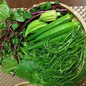 これも早朝の無人販売所で知らない農家のおばあさんからタダ同然で分けてもらった夏野菜たち、オカヒジキ、ツルムラサキ、ツルムラサキのツル菜、オクラ、そして特大のオクラ! 教えられた通りオカヒジキは胡麻油と醤油でさっと炒めた ツルムラサキのツル菜は40秒ほど茹で御浸しにツルムラサキのツル菜がこんなに美味しいなんて知らなかった~
