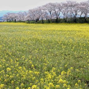 ソメイヨシノと菜の花のコラボ 県内に桜と菜の花がたくさん咲いている処があるとは今まで知らなかった‼️