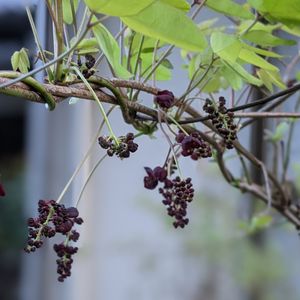 これは、何の実でしょうか? 答えは、、、。 昨年実が三個ついていましたが、食べられなかったので、今年はたくさん❤️できて、嬉しいです😊 初めての収穫で恐る恐る食してみました😉 すんごく甘くて美味しい💞やはり森のミルクやー❗️熊が好きそうな味🤩 そうです。アケビです✨ 三枚葉と五枚葉のアケビを植えて四年目で収穫出来ました💛💛💛