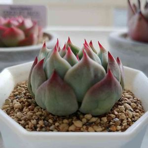 夏に親株の周りにぐるっと出て来た子株ちゃん達💓 1つ違う子まぎれてるけど ♡(˃͈ દ ˂͈ ༶ )ゆっくり成長中💓