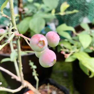 ブルーベリーの実が🫐 少し色付いてきました😊 鳥さんに食べられないよう ネットを張りました😃 どれぐらい収穫できるか 楽しみです(⑅︎•ॢ◡︎•ॢ).。*♥︎