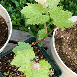 日当たりの良いほうの ベーリーA 花穂もあります☺️ お日様の力は偉大ですね🌞 新梢は2つ残してそれぞれ2つづつ花穂があるのですが、8号鉢なのでそのうち間引きする予定です。 葡萄栽培初めてなので、ネットで調べつつやっております🧐