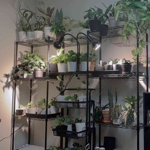 急な寒さに耐えられなくて葉っぱが黄色くなっちゃった子いるけど、何とかラックを組み立てて半分部屋の角に移動しました(*^^*)育成ライトひとつじゃ足りなくてもう一個買おうか悩み中🙄 ヘリオスがアガベにはいいと聞くんですが売ってない😭