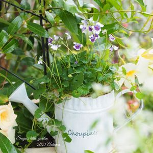 パンダスミレ🌼 存在は知っていたもののGSやインスタで見かけて可愛さを再確認 お迎えしました✨ ホワイトとパープルのコントラストが何とも愛らしい🐼 グランドカバーにもしたいのでランナーで増えるのを期待してます🌱