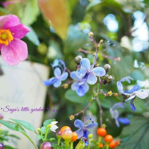 お気に入りコーナー🌼 ブルーウイングのブルーもこの時期に見ると秋色めいて💙 秋明菊やゴシキトウガラシと一緒に📷